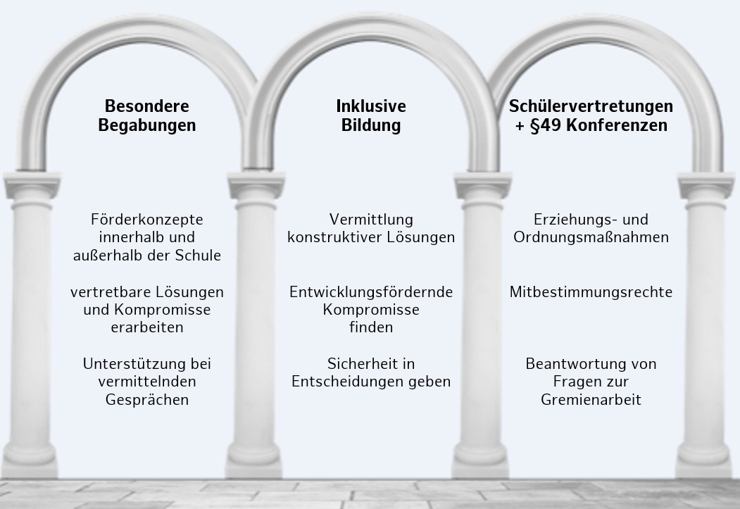 Jede der drei Ombudsstellen ist auf einen Aufgabenbereich spezialisiert. So gibt es je eine Ombudsstelle für inklusive Bildung, für besondere Begabungen sowie für Schülervertretungen, Erziehungs- und Ordnungsmaßnahmen. Alle drei haben ihren Sitz im Zentrum für Schul- und Jugendinformation (ZSJ). Sie werden nur auf Anfrage von Sorgeberechtigten und älteren Schülerinnen und Schülern tätig.