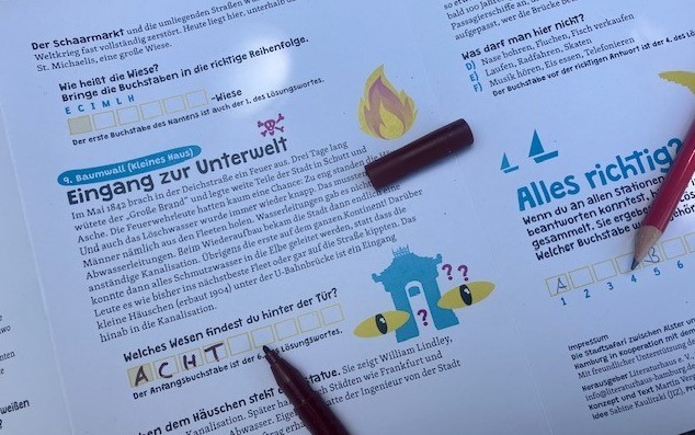 Bei den Stadtsafaris können Kinder in Begleitung ihrer Familien oder im Klassenverband auf Entdeckungs- und Enträtselungstour durch die Hamburger Innenstadt gehen. Das kostenlose und individuell planbare Freizeit- und Kulturangebot wird jedes Jahr zu den thematisch neu konzipiert: 2021 „Wasser“; 2022 „Klima“; 2023 „Architektur“; 2024 „Tiere“. Anhand eines Laufzettels werden auf einer vorgegebenen Route, an zehn Orten verschiedene Rätsel aufgeben. Wer die Fragen richtig beantwortet und am Ende das Lösungswort bildet, kann bei einer Buch-Verlosung mitmachen. Die Stadtsafari dauert ca. 90 – 120 Minuten.